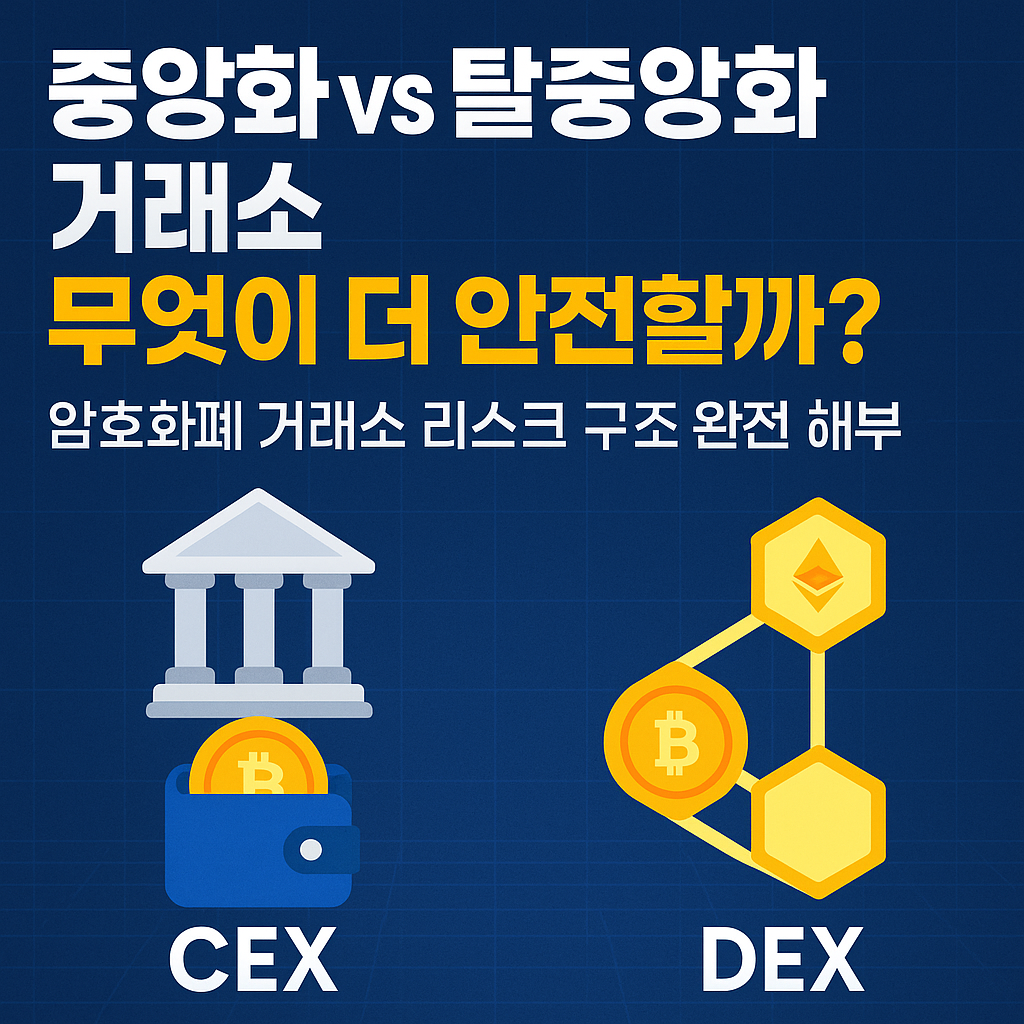 중앙화 vs 탈중앙화 거래소, 무엇이 더 안전할까? 암호화폐 거래소 리스크 구조 완전 해부 왜 거래소 리스크를 이해해야 할까?암호화폐를 처음 시작할 때 가장 먼저 접하는 것이 거래소이다.하지만 이 거래소 자체가 가장 큰 리스크의 근원이 될 수도 있다는 사실을 알고 있는가?특히 2022년 FTX 거래소 파산 사태 이후, 수많은 투자자가 거래소 리스크를 체감했다. 거래소가 사라지면 우리의 소중한 자산도 함께 사라질 수 있다. 오늘은 초보자도 이해할 수 있도록, ‘중앙화 거래소(CEX)와 탈중앙화 거래소(DEX)’의 구조와 리스크를 구체적으로 비교·설명해 보려고 한다. 1) 중앙화 거래소(CEX)의 구조와 특징▶ 구조 개요회사(법인)가 운영 주체사용자 자산은 거래소 내부 지갑에 보관사용자 인터페이스가 편리하..
